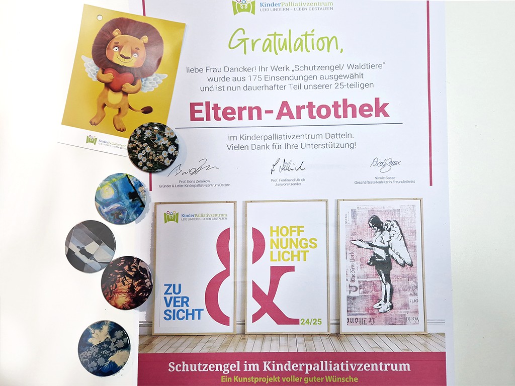 Mit meinem Bild „Schutzengel | Waldtiere“ möchte ich den kleinen Patienten im Kinderpalliativzentrum Datteln und deren Familie und Freunden ein Lächeln ins Gesicht zaubern.