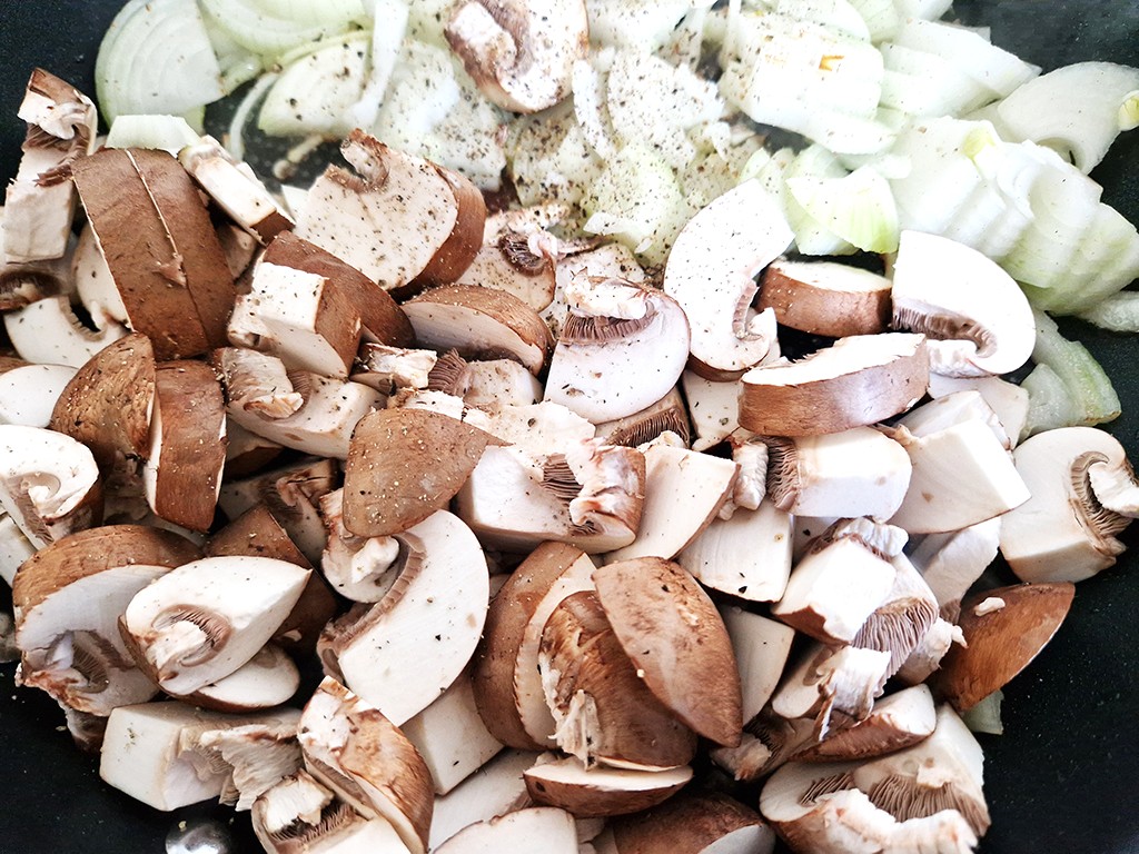 Das Gemüse schneiden wir klein und legen es in einem Sud aus Sojasauce, Olivenöl und Gewürzen ein.