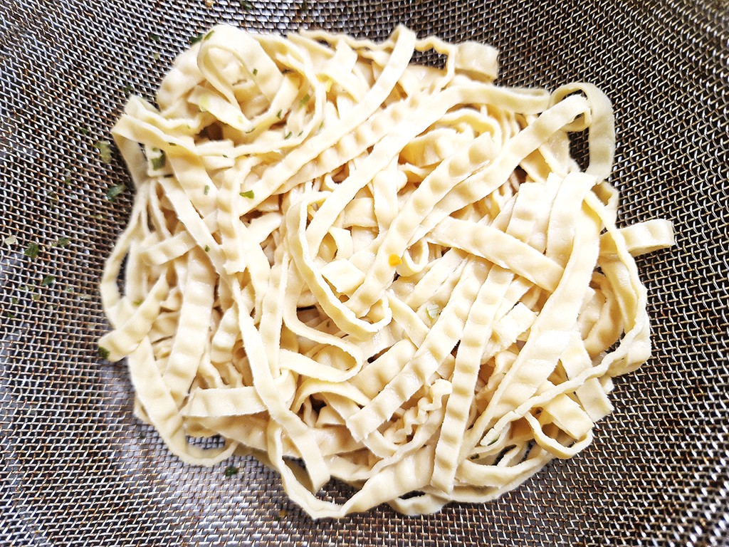 Dazu gibt es Gitterkartoffeln, welche wir schneiden und in der Pfanne kross anbraten.