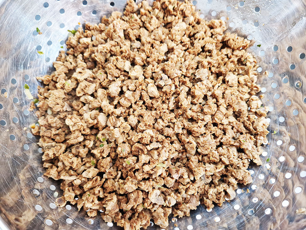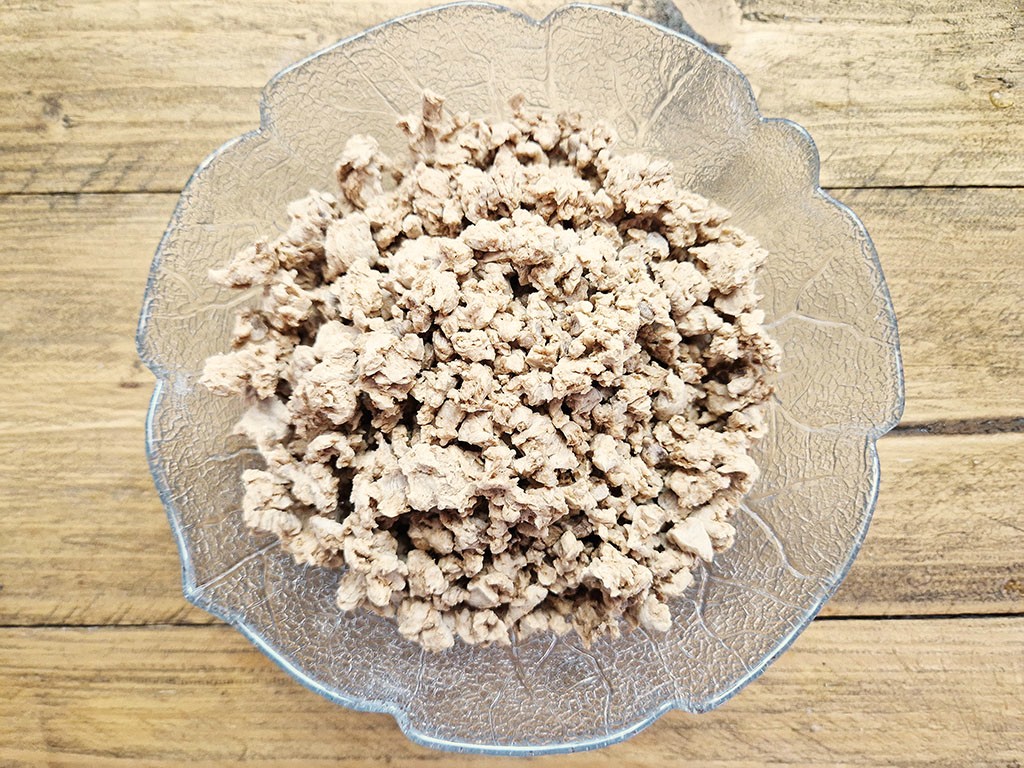 - 42%, WEIZENeiweißtexturat* (WEIZENeiweiß*, WEIZENmehl*)