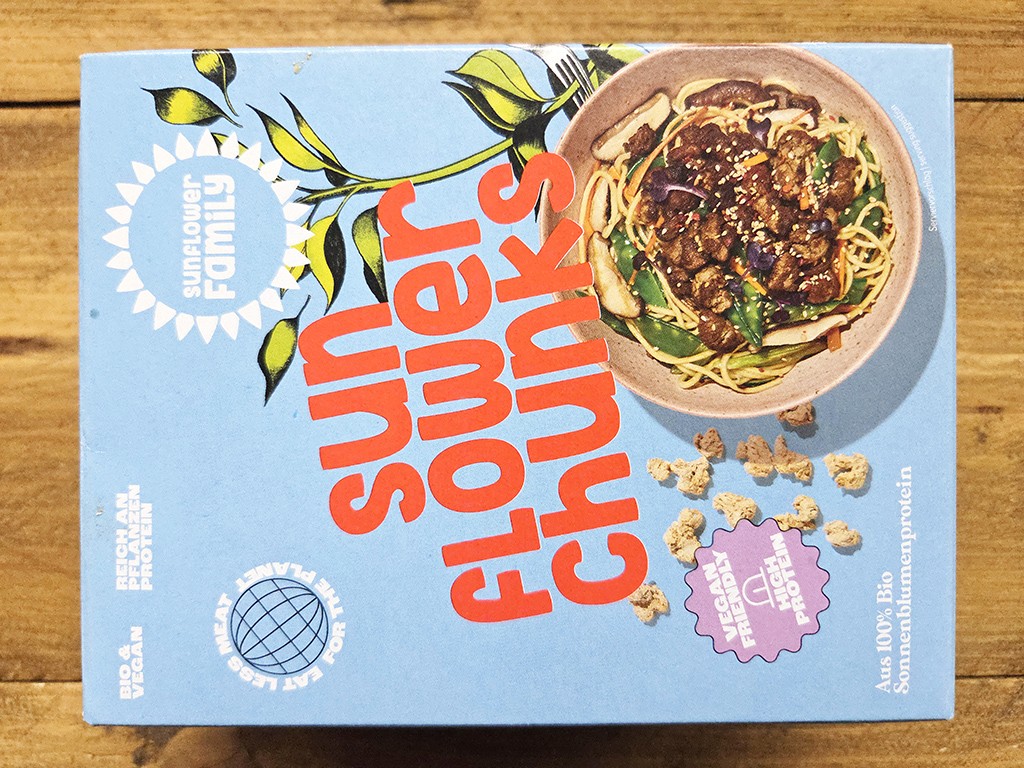„SunflowerCHUNKS sind die perfekte vegane Fleischalternative – 100 % pflanzlich, proteinreich und nachhaltig. Hergestellt aus hochwertigem Bio-Sonnenblumenprotein, ganz ohne Soja, Zusatzstoffe oder künstliche Zutaten.“