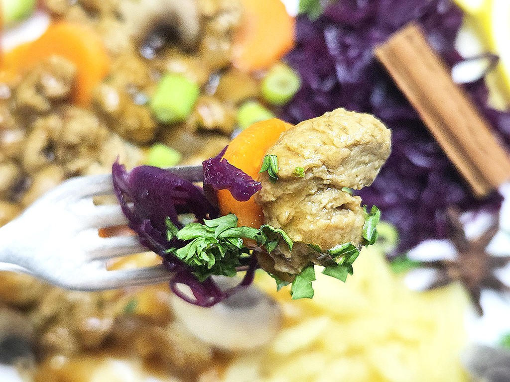 Verwendung: Für veganes Geschnetzeltes, Gulasch, Currys & Ragouts, zu Gemüse und Salaten