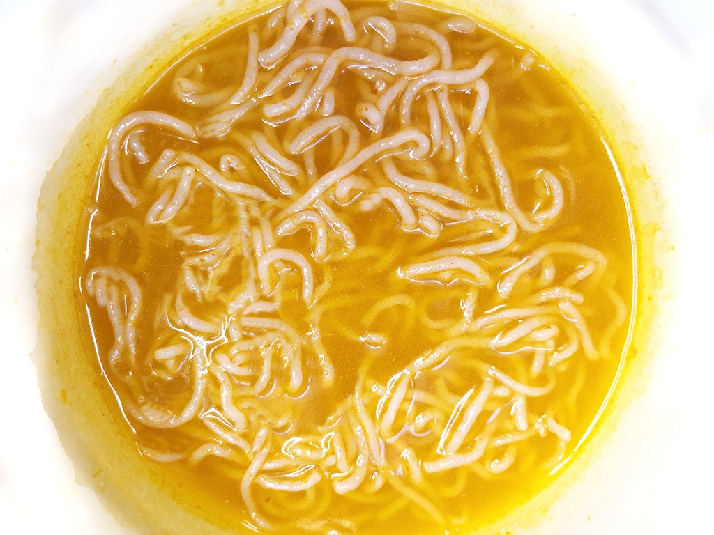 In der in Gemüsebrühe aufgelöste Currypaste weichen wir unsere Konjaknudeln ein…