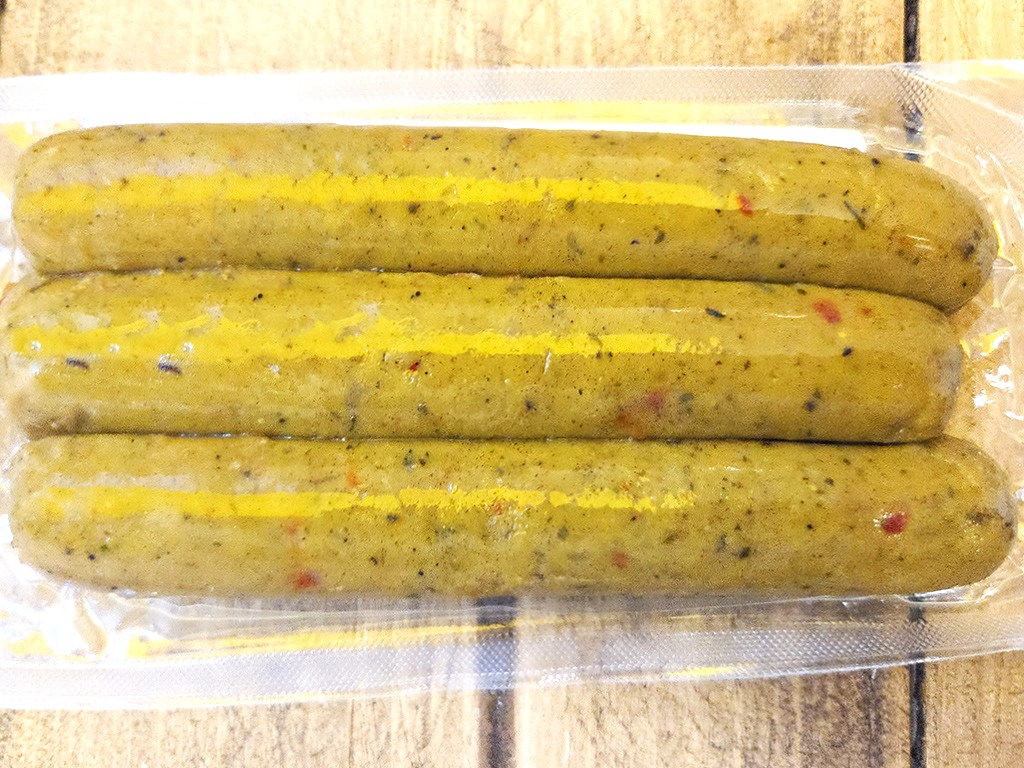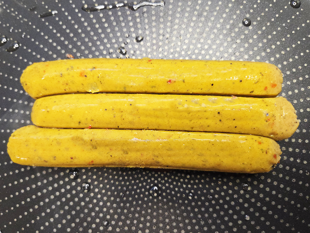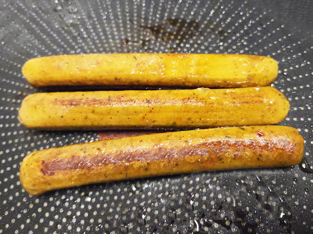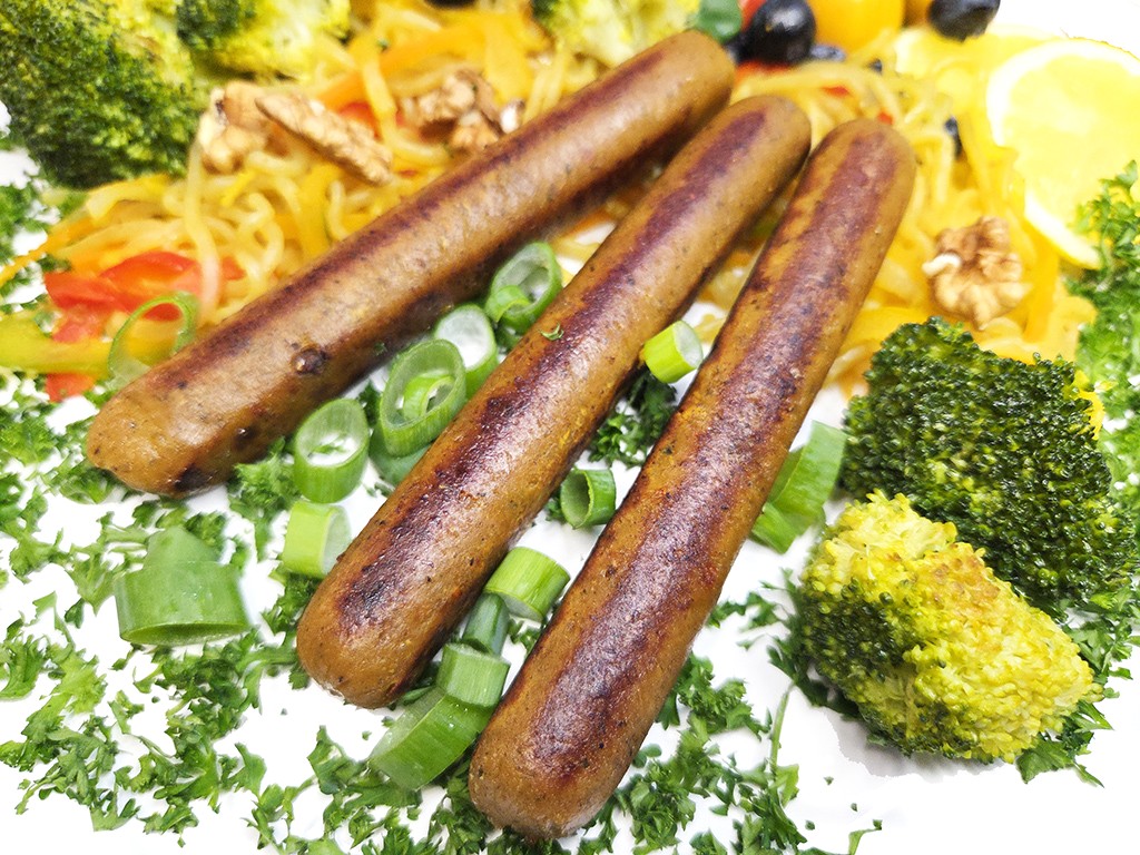 Beschreibung: Exotische Seitan-Bratwurst nach thailändischer Art.